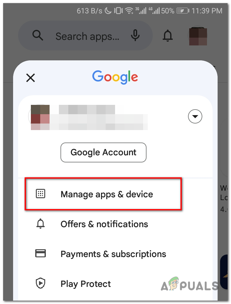 From the menu, select “Manage app and device”. - You will see a list of apps that have available updates. If Discord is listed, you will find it under the “Updates” tab.