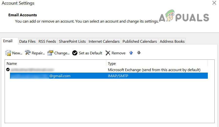 - Open the Account Settings for Gmail in your email client, like Outlook, and in the Email tab, double-click on the Gmail address.