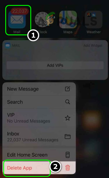 - Open the iPhone menu and press/hold the Mail app until a pop-up menu appears.