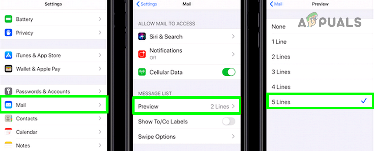 Set iPhone Mail Preview to 5 Lines - Restart your iPhone and check if the mail download issue is resolved.