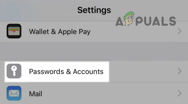 - Open iPhone Settings and go to Passwords & Accounts.