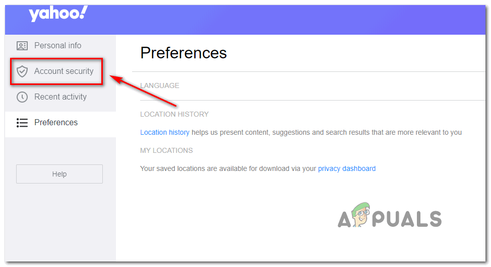 - Once you are inside the Yahoo mail settings page of your account, use the menu on the left to click on Account Security.