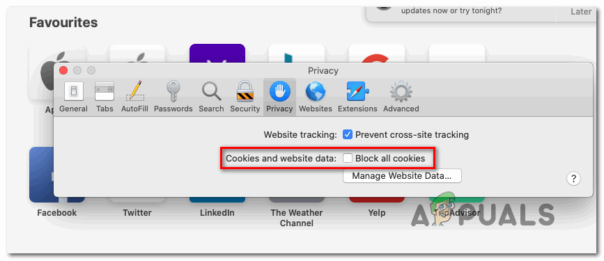 In this case, you should be able to fix the issue by accessing the Preferences menu of your Safari app and enabling 3rd party cookies. Several affected users have confirmed that this operation finally allowed them to get rid of the “Configuration could not be verified” error and use the Thunderbird app normally.