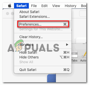 - Once inside, use Safari’s ribbon bar to click on Preferences from the newly appeared context menu.