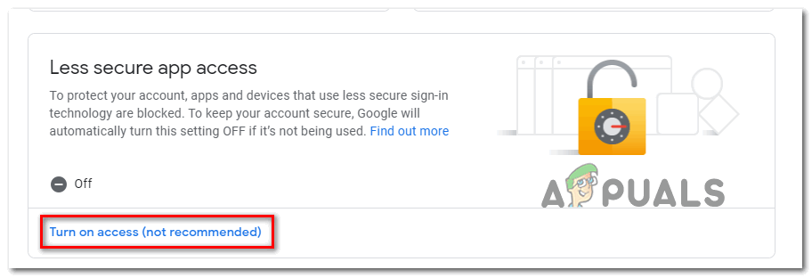 If this scenario is applicable to your current situation, and less secured apps are not allowed in your email provider settings, you can fix this problem simply by enabling this option. To do this, follow the guide that’s focused on the email provider that you’re using: