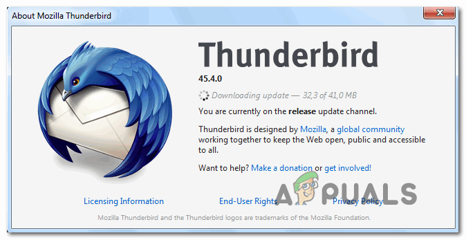 - Thunderbird bug (68.2.0 and older) – If you’re using an older Thunderbird version, you might see this error due to a miscommunication between the Thunderbird application and Mozilla Firefox (only happens if this is set as your main browser). In this case, you should be able to fix the issue by updating to the latest build of Thunderbird.