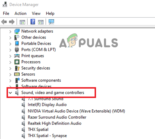 Click on the Sound, video and game controller options. - After that navigate to Audio driver, then right-click on it and go for the options Uninstall device.