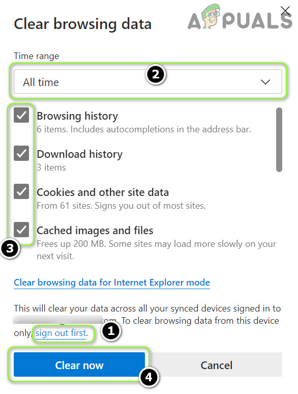 Clear the All-Time Browsing Data of Edge - Then click on the Clear Now button and afterward, relaunch Edge to check if the Ticketmaster error code 0007 issue is resolved.