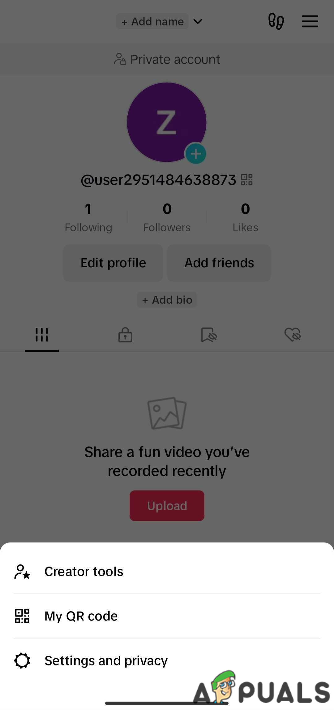 - Open the TikTok app and tap your Profile icon at the bottom right corner.