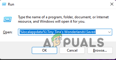 - With the Run dialog box, type in “%localappdata%\TinyTina’sWonderlands\Saved” without the quotation marks and then hit Enter.