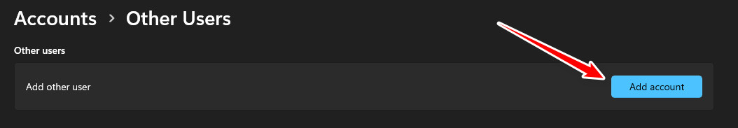 - Click Add account and create a new local user.