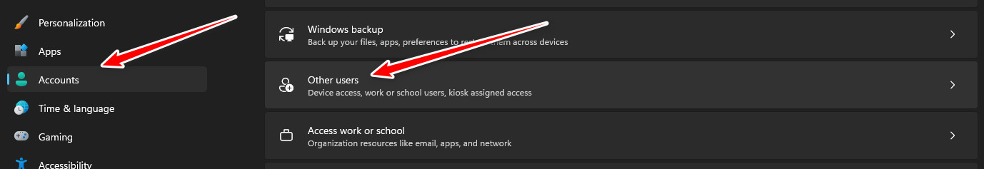 - Navigate to Accounts → Family & other users (or Other users on certain Windows versions).
