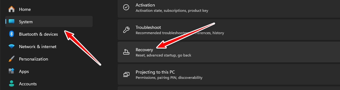 - Go to System → Recovery.