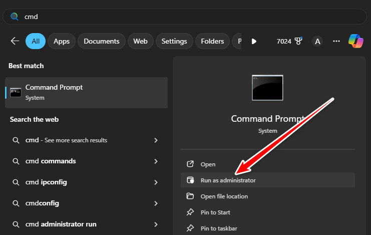 - Right-click Command Prompt and select Run as administrator.