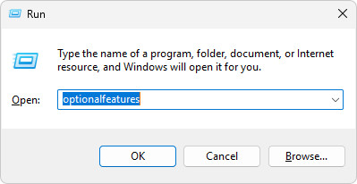 - Press Windows key + R, type optionalfeatures, and press Enter.