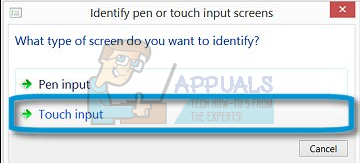 - Now a little window will pop up asking you which input do you want to select. Select the option of Touch input and proceed with the setup.