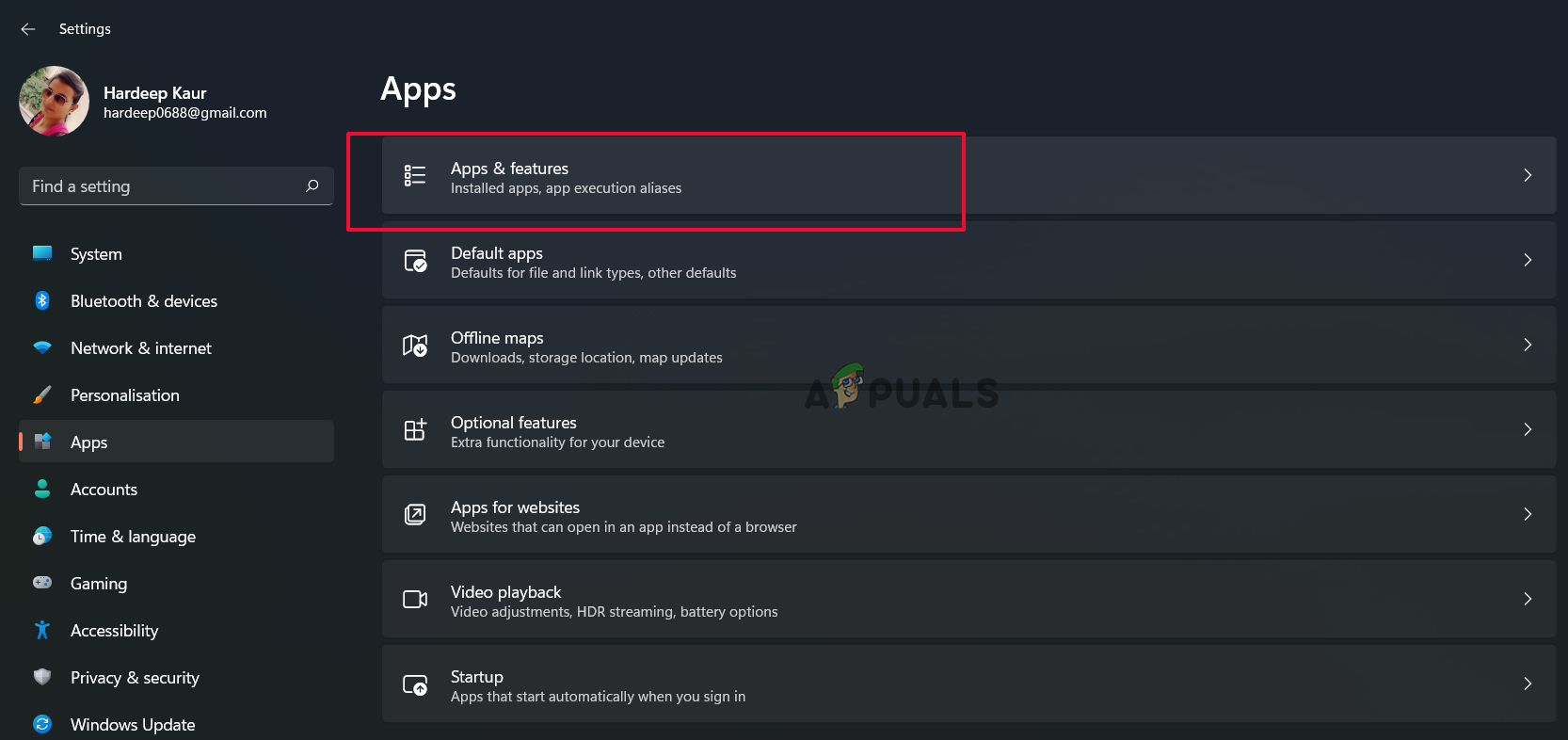 - Click on Apps and select Apps & Features.