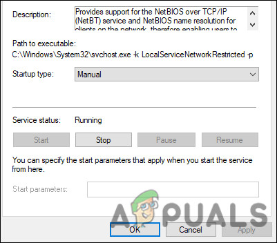 - If it is already started, click on the Stop button and then hit Start again. Now check if the issue is fixed.