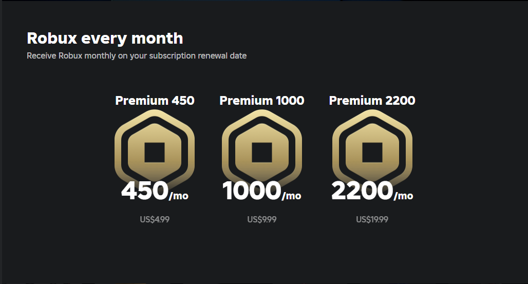 Of these three tiers, Premium 2200 gives you the most bang for your buck, as it grants you the highest amount of Robux per dollar spent.