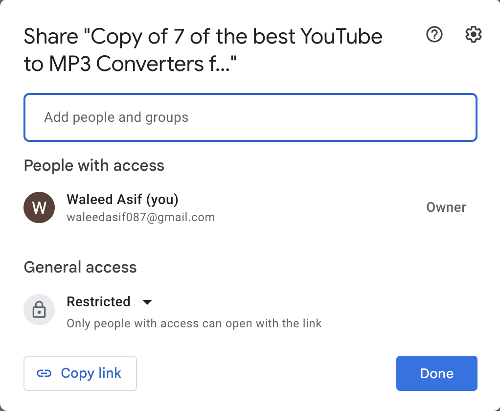Upon opening any file transferred to the new account, you will notice that it still contains the previous Google Drive account as the owner. You can keep it as is or you can update the new account as the owner of the file. Here’s how you would do that.