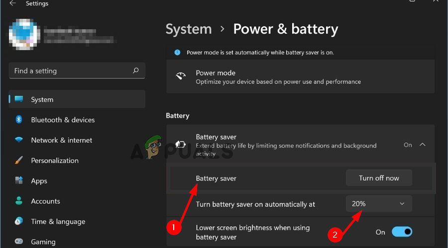 Click on the Power & Battery - Now click on the battery-saver mode if enabled to disable it.