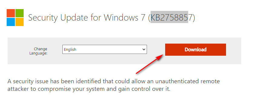- Open your default browser and navigate to the download page of the Windows 7 KB27588.