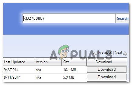 If you decide to use the Microsoft Update Catalog to install the KB2758857 update, follow the step by step instructions below: