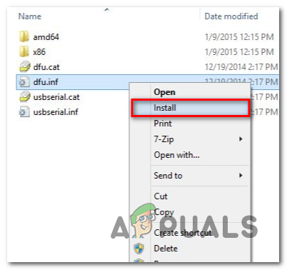 - When you get to the location where you downloaded the driver that was previously failing, right-click on the .inf file and choose Install from the context menu that just appeared.