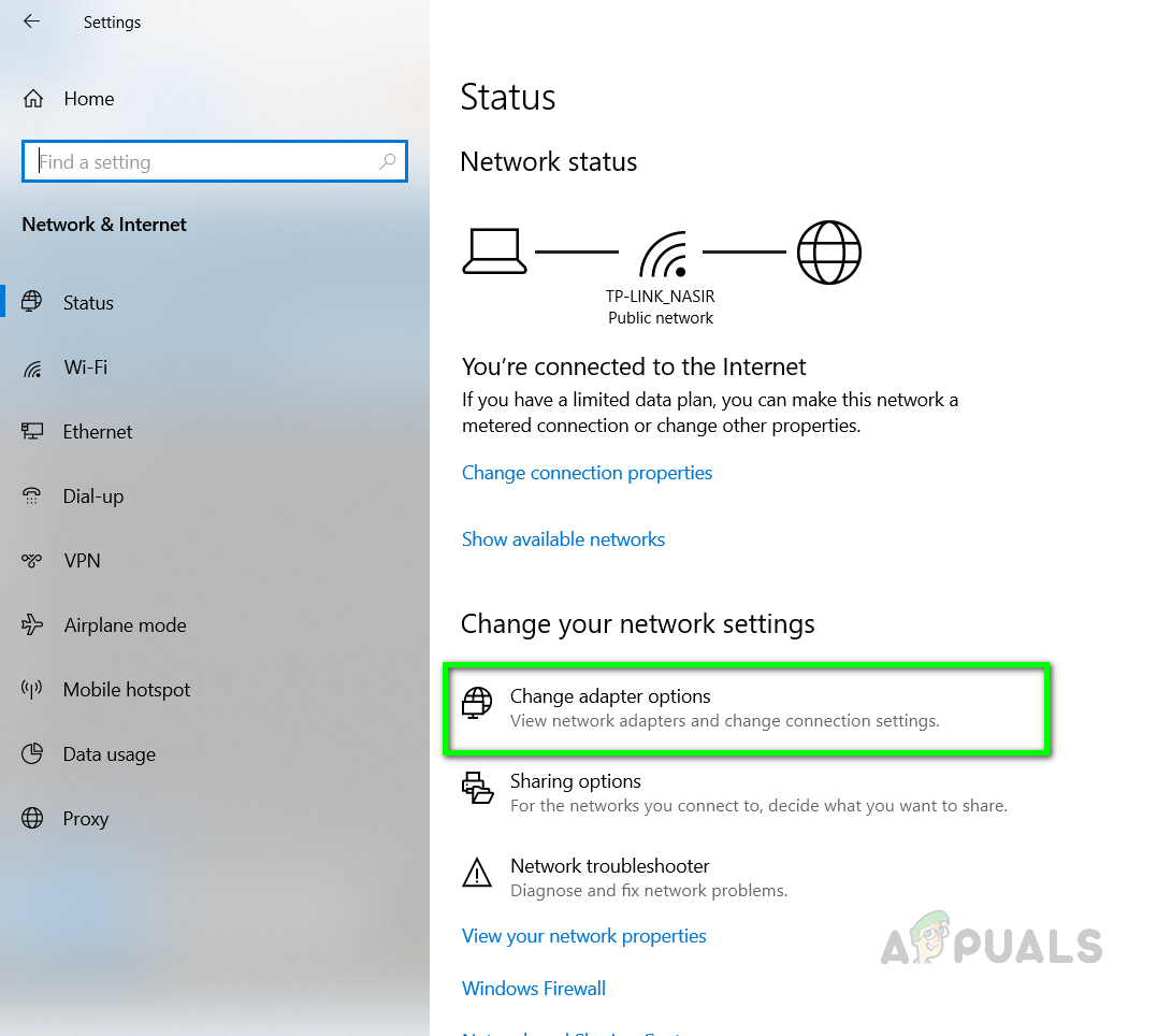 - First, you will need to disable your network adapter which will temporarily disconnect you from the internet. Go to your Network & Internet Settings and click on Change Adapter options