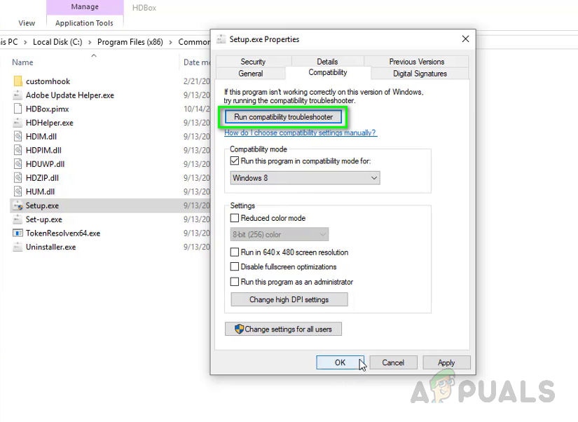 In this method, we will run the Adobe Photoshop installation setup file in compatibility mode. Windows allows the users to run or execute a certain program in compatibility mode for previous Windows versions. This enables the execution of applications that were meant for previous versions of Windows to run on later versions as well. This compatibility mode can also be used to troubleshoot installation errors and has been reported to work by many users.
