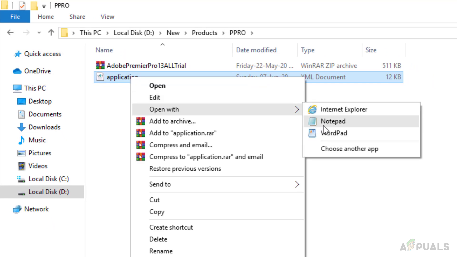 - Open the folder that contains the Photoshop installation files, you will see the Products folder, and inside there is another folder PPRO that contains the application.xml file. Right-click on the file to open it with notepad.