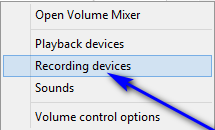 Opening Sounds – Windows - Right-click on Sounds icon on your Desktop and select Recording devices (for older versions of Windows).