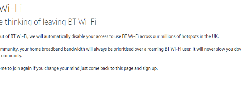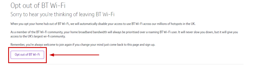 Also, keep in mind that opting out of BT Wi-Fi will disable your permission to use BT Wi-Fi spread across millions of hotspots in the United Kingdom.