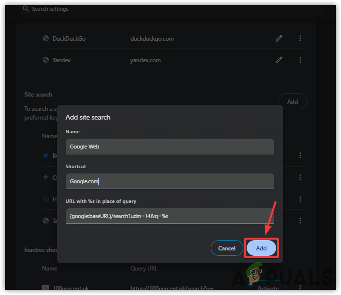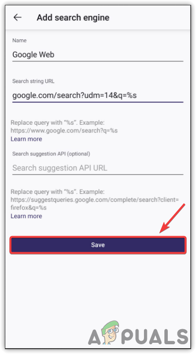 - Tap Add Search Engine here, and fill out the data in the fields mentioned below.