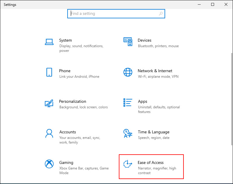 - Launch Windows Settings and select Ease of Access from the list of options available.