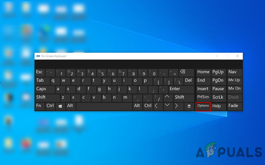 - Click on the Options key on the on-screen keyboard. You should find it on the right-corner side of the keyboard.