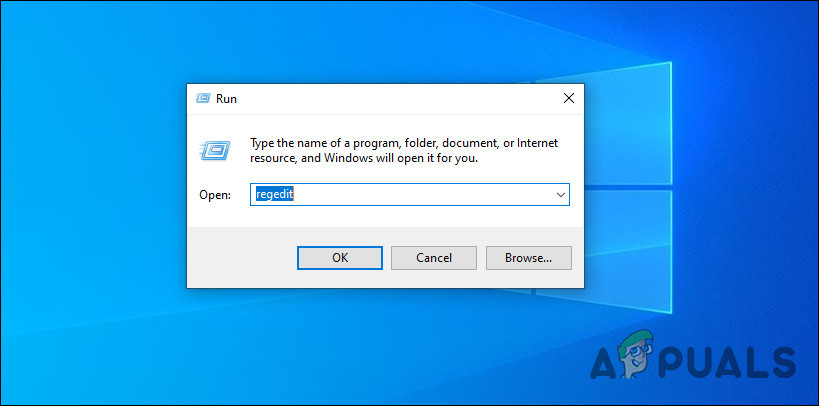 - Inside the text field of the dialog box, type regedit and hit Enter.