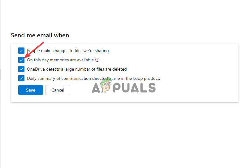 - Finally, select Save and that will stop OneDrive from sending you email notifications.