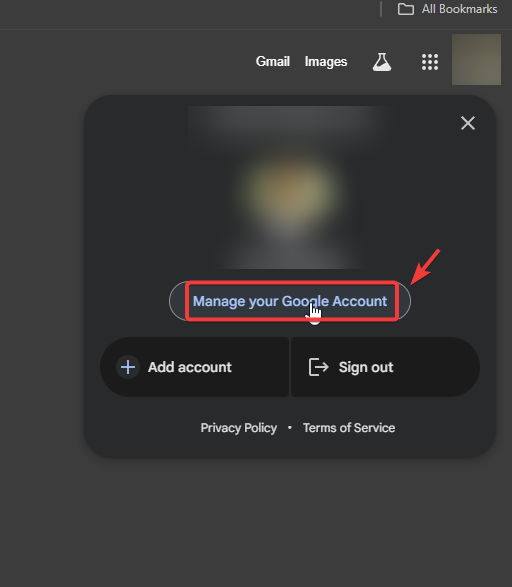 - Click on your profile icon from the top-right and select Manage Your Google Account.