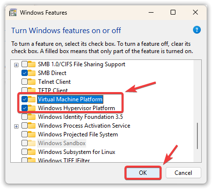 - Enable Virtual Machine Platform.