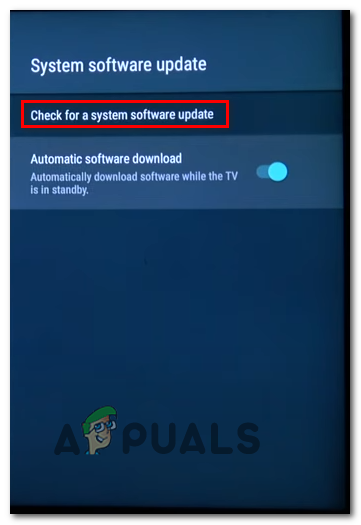 As some affected users have reported, you should be able to fix this problem by forcing your Android TV to update itself to the latest firmware version available. Fortunately, you can do this directly from the Settings menu of your Android TV.