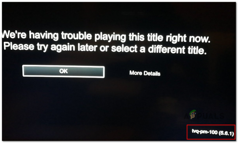 Some Netflix users are encountering the error code error code tvq-pm-100 (We’re having trouble playing this title right now). This problem is reported to occur on all Windows platforms and with some Smart TV operating systems.