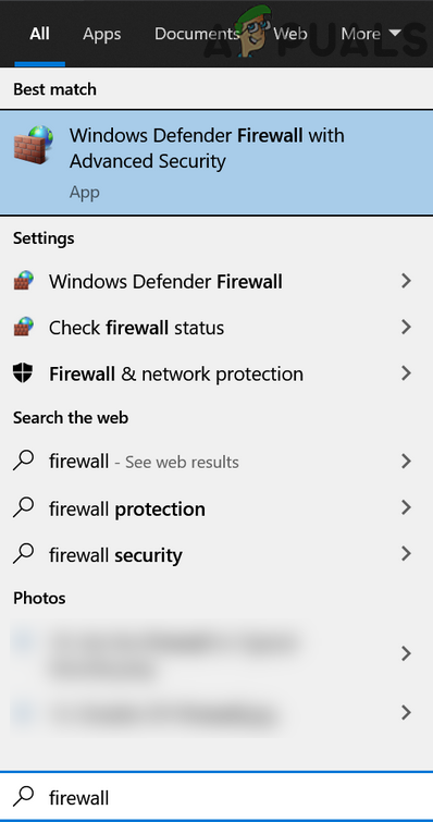 - Press the window key and in the search box type Defender Firewall