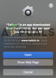 Open Twitch application from Launchpad - Then the system will start verifying the files and in some time your system starts prompting you whether you need to launch the file or not. Then click on the Open option for updating the particular application from the particular network and start validating the files.