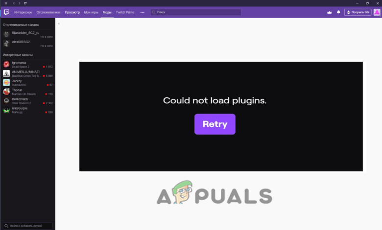 Twitch mods tab could not load plugins Twitch games tab not loading