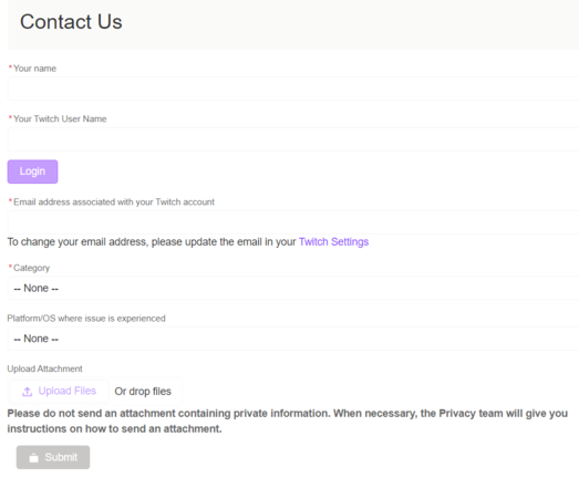 A final option for users is to reach out to Twitch support. You will need to visit Twitch’s official website. Here, generate a Twitch ticket, and send it to Twitch support.