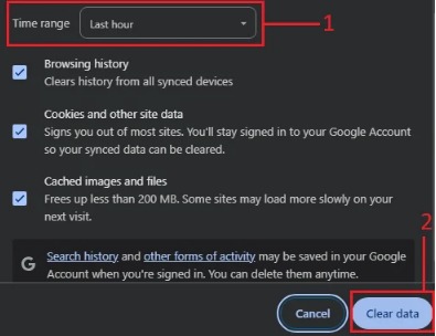 - Choose the desired time range, make sure the necessary boxes are checked, and press the Clear Data button to proceed.