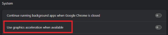 - Locate Use hardware acceleration when available and turn off the setting.