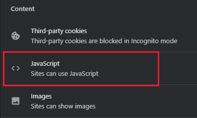 - Make sure JavaScript is enabled; a blue circle indicates it is on.