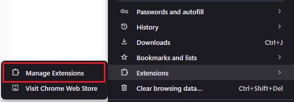 - Choose Manage Extensions.